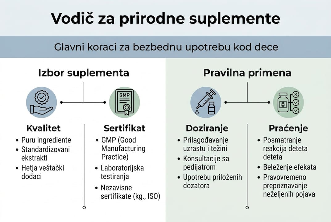 - Roditelji treba da biraju bezbedne i kvalitetne prirodne suplemente prema uzrastu i potrebama deteta.