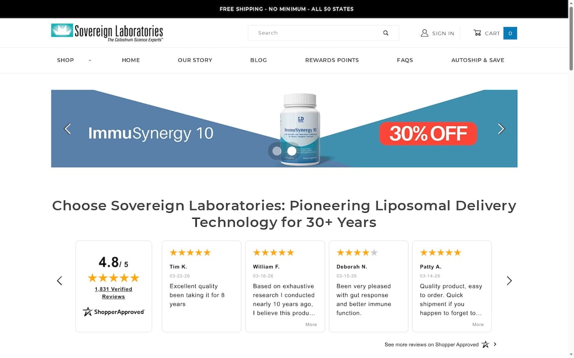 Sovereign Laboratories kombinuje kolostrum visokog kvaliteta i liposomalnu isporuku što daje jasnu diferenciju od standardnih suplementa. Dodatan opseg proizvoda za kožu, zglobove i kućne ljubimce čini ponudu praktičnom za porodice.